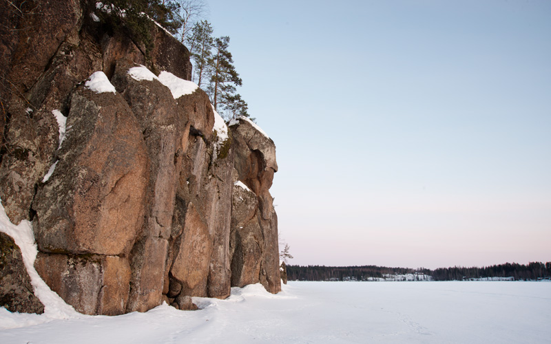 Haukkasaaren lounaisrantaa reunustaa jyrkkä kallioseinämä. Jyrkänteen keskellä erottuu korkea, paasimainen kallio, jonka yläosa muistuttaa ihmiskasvojen profiilia. Kallion alaosassa on muutama punainen läiskä. Ihmishahmoisen kallion oikealla puolella on tasainen kalliopinta, jonka oikeassa laidassa on lisää punaväriä. Pystyä jälkeä ei voi sen tarkemmin tunnistaa. Haukkasaaren punaväriläiskät ovat kooltaan vaatimattomia ja kuluneita. Ne ovat kuitenkin mieluummin maalausjälkiä kuin luontaista väriä. Tämän puolesta puhuu myös muutaman sadan metrin päässä sijaitseva Ilmuksenvuoren kalliomaalaus.