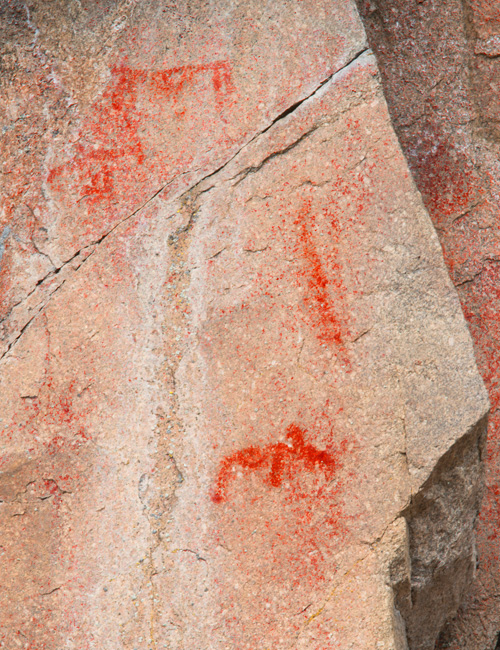 Esihistoriallinen kalliomaalaus, jossa on tunnistettavia kuvioita.