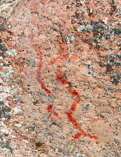 Esihistoriallinen kalliomaalaus, jossa on tunnistettavia kuvioita.