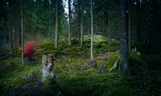 pronssikautinen hautaröykkiö, Särkijärvi, Vehmaa, Suomi, n. 1500 eKr (2008) Bronze Age burial cairn, Särkijärvi, Vehmaa, Finland, c. 1500 BC (2008) digital c-print, dipond 35 x 60 cm