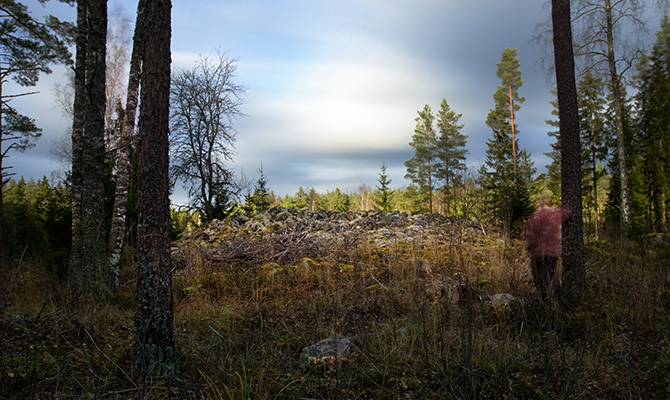 pronssikautinen hautaröykkiö, Särkijärvi, Vehmaa, Suomi, n. 1500 eKr (2008) Bronze Age burial cairn, Särkijärvi, Vehmaa, Finland, c. 1500 BC (2008) digital c-print, dipond 35 x 60 cm