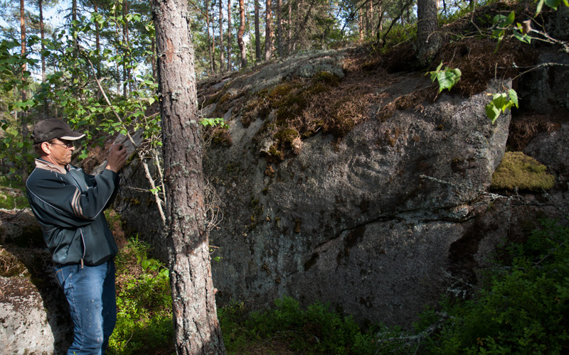 Maanviljelijä Reijo Juustin löytämä kuvio sijaitsee noin 5,5 km Sauvon kirkolta pohjoiskoilliseen Poutajoen länsipuolisella kallioalueella. Kuvio on matalahkossa pohjoiskoilliseen aukeavassa kallioseinämässä. Hieman eteenpäin kallio laskee alas komeana jyrkänteenä. Noin kilometri länteen toisen kallion laella on pronssikautisia röykkiöitä.