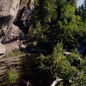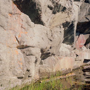 L1947:8048, L1947:8180, L1947:8574, L1947:8724, L1947:8773, Stone Age rock paintings. The main field of the Hästskotjärn rock painting is a tight composition of various figures, including elks, humans, a snake etc. Below the main field there are paintings in a wide area, but they are badly preserved. Left to the main field there are two fragmentary figures, elk head on the right and probably another animal on the left. Right to the main field, behind the trees there are more fragmentary figures, including three elk heads. Hästskotjärnin kalliomaalausten keskeinen kuvio on kalliopaateen maalattu tiivis sommitelma, josta voi erottaa mm. hirviä, ihmisiä sekä käärmeen. Ryhmän alla kalliossa on myös värijälkiä laajalla alueella, mutta ne ovat huonommin säilyneitä. Pääryhmästä vasemmalle on kaksi katkelmallista maalausta, joista oikeanpuoleinen on selvä hirvi. Pääryhmästä oikealla, rantapuuston takana on vielä lisää katkelmallisia maalauksia. Näiden joukosta voi tunnistaa kolme hirvenpäätä.
