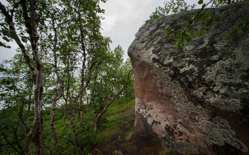 Näkkäläjärven länsirannalla, koivuja kasvavalla kumpareella kohoaa kolmimetrinen kivi, joka tunnetaan kalastajien ja poromiesten seitapaikkana. Kiven ylös kapeneva koilliskylki kääntyy sisäänpäin. Suojaisena se on säästynyt muuta kiveä peittävältä jäkälältä. Noin neliömetrin alueella kivessä on runsaasti punaisia jälkiä. Niissä erottaa etenkin alhaalla eläimenkaltaista muotoa sekä ylhäällä ristin. Kuviot ovat kuitenkin epämääräisiä, ja niitä pidetään luontaisina.