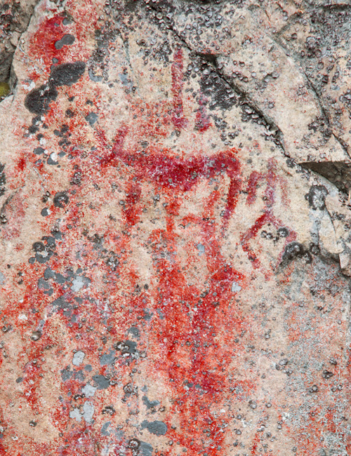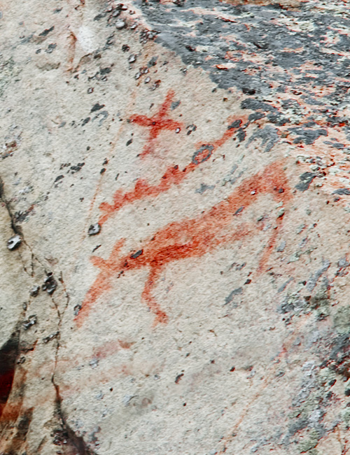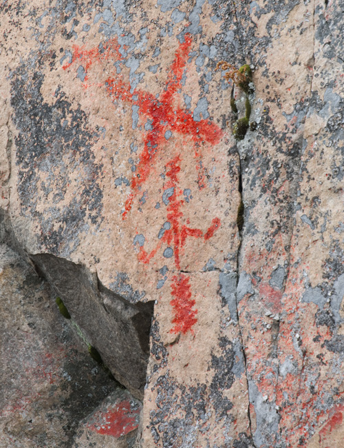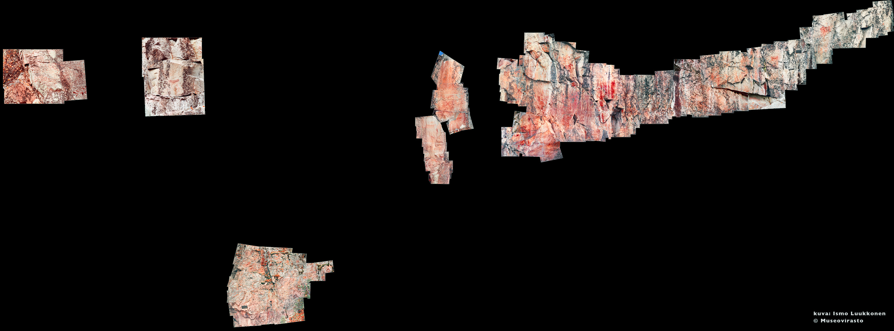 Pienen nousun jälkeen kalliosta erottuvaan kulmaukseen on maalattu erikoinen haravamainen kuvio, joka koostunee ainakin yhdeksästä oikealle suuntaavasta sivuttain maalatusta ihmisestä (hahmojen korkeus noin 30 cm). Kuviosta alavasemmalle sijaitsevassa kallionlohkareessa on venekuvaa muistuttava merkki, jonka keskiosa on peitetty voimakkaan punaisella jäljellä. Alempana kuluneesta kalliosta voi hahmottaa muutaman ihmishahmon piirteet.