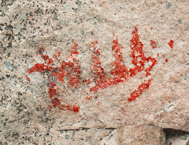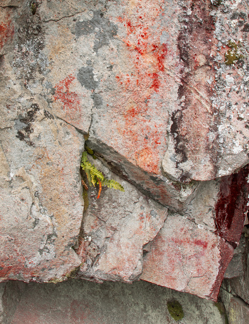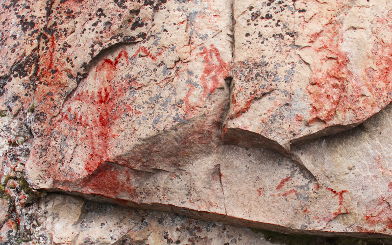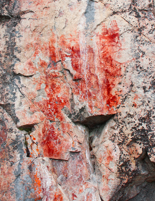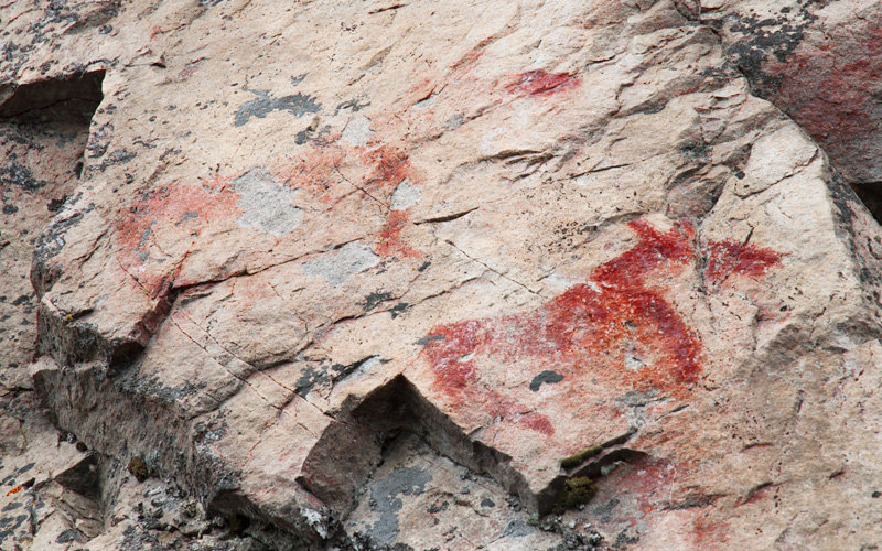 Heti korkealle kallioon maalattujen kuvien jälkeen vastassa ovat Saraakallion alimmat maalausjäljet kallioon kiinnitetyn rauhoituskyltin tuntumassa. Jälkiä on muutamia hajallaan kalliossa. Selvimmät ovat pienessä kallionkolossa olevat ihmishahmot.