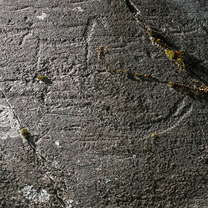 Bronze Age rock carvings, unpainted. There are no guides or signs to the Hammer rock art site. I found only one of the 18 fields in the area. The field lies right next to the road in a vertical cliff. Boat figures are clearest images in the unpainted rock, but there is much more if you can look at the rock with light from the side. Hammerin kalliopiirrosalueelle ei ole opasteita. Alueen 18 piirroskentästä löysin yhden. Se sijaitsee pystyssä kalliossa aivan tien vierellä. Maalaamattomasta kalliosta parhaiten erottuvat venekuvat, mutta siellä on paljon muutakin, jos vain pääsee tarkastelemaan kalliota sivuvalossa.