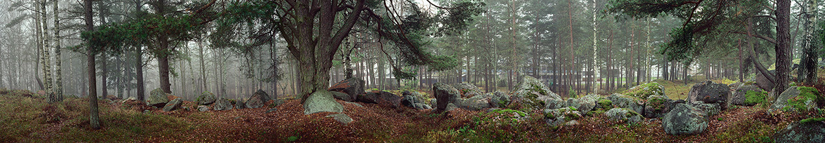 näkymä rautakautiselta linnavuorelta, a view from an Iron Age hill fort Linnasmäki, Turku, Finland 52 x 300 cm (2003)