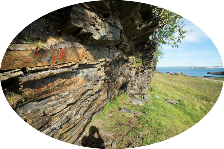 At the rock paintings, a view to the fjord, August 2015. Kalliomaalauksella, näkymä vuonolle, elokuu 2015.
