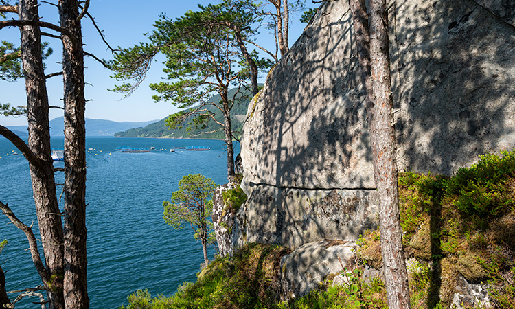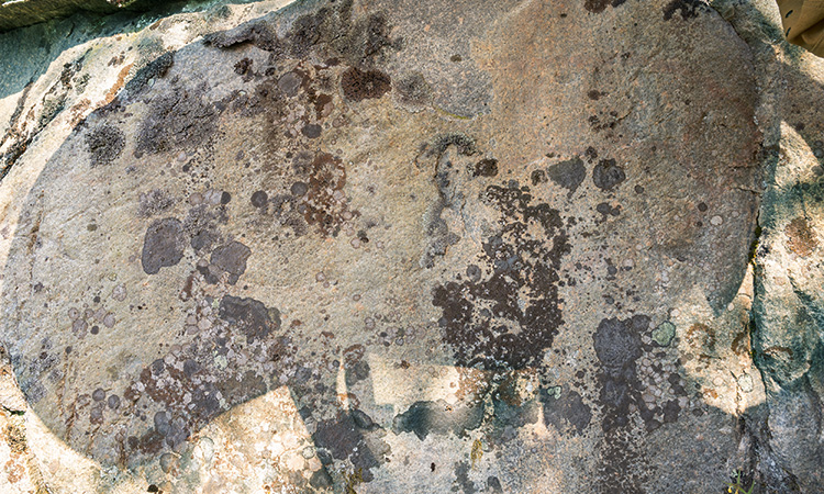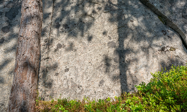 Prehistoric rock paintings. There are quite many images at the Honnhammar XXI rock painting, but they are faded and covered by lichen. I visited the site in a sunny day and there were strong shadows on the wall. It was difficult to see anything. The best visible figure was the big fish on the left. Fragments of three more fish can be found on the right. Honnhammer XXI -kalliomaalauksella on runsaasti kuvia, mutta ne ovat haipuneita ja jäkälän peittämiä. Lisäksi käyntini aikana kallioon paistoi kova auringonvalo, joka heitti siihen voimakkaat varjot. Oli vaikeaa nähdä yhtään mitään. Parhaiten erottui suurikokoinen kala vasemmalla. Oikealta voi löytää kolmen suurikokoisen kalan rippeet.