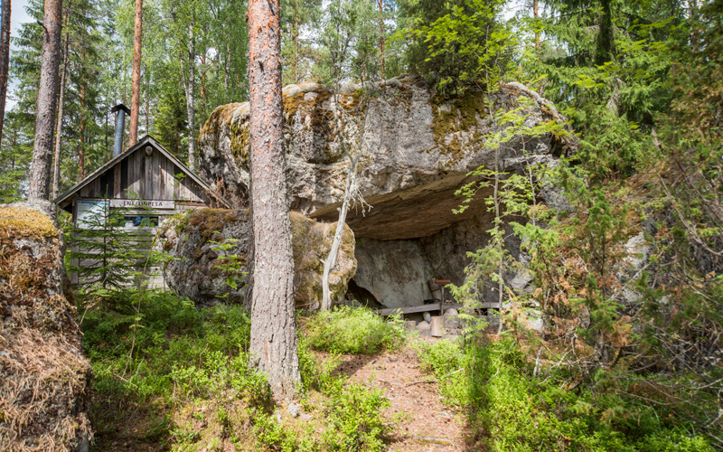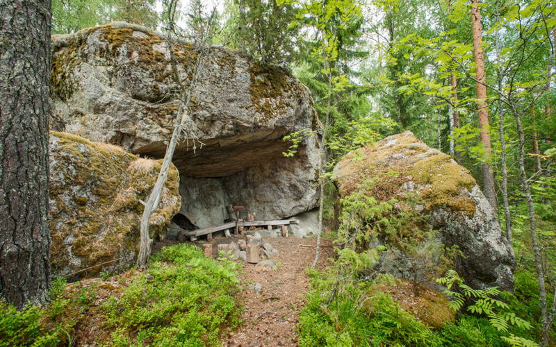 Siirtolohkareiden muodostama onkalo, joka nykyään toimii nuotiopaikkana. Onkalon peräseinässä on epämääräisiä punaisia jälkiä. Sijainti korkealla ja kaukana rannasta sekä jälkien epämääräisyys aiheuttavat epäilystä jälkien ajoitukseen.