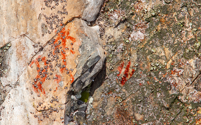 Maalausalueen oikealla laidalla on kaksi päällekkäin olevaa hahmoa, ilmeisesti ihmisiä. Näiden alapuolella kalliosta ulkonevaa pystyä muotoa on maalattu punaisella kahdelta sivulta.