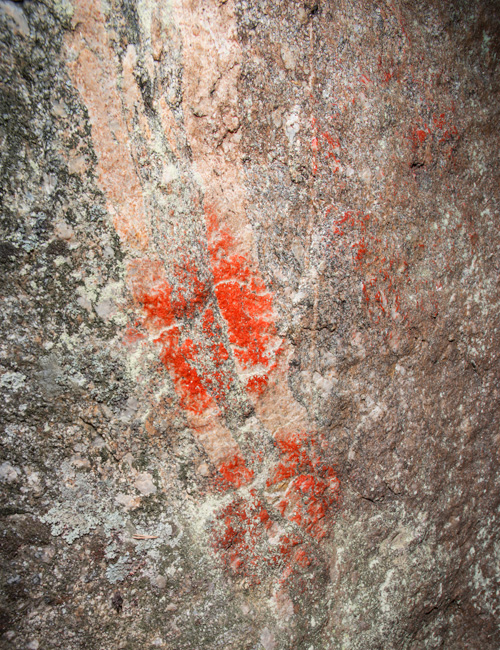 Kalliomaalaus, jossa ei ole tunnistettavia kuvioita. Ajoitus avoin.