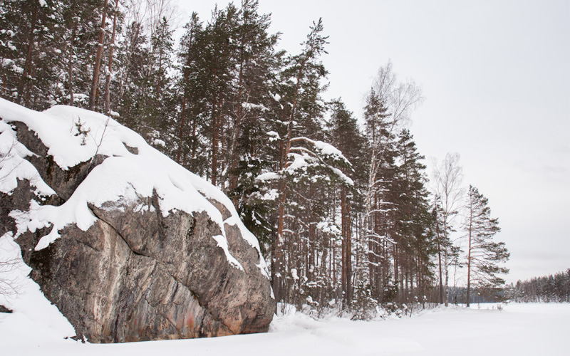 Ajan kuluttama esihistoriallinen kalliomaalaus, jossa on tunnistettavia kuvioita.
