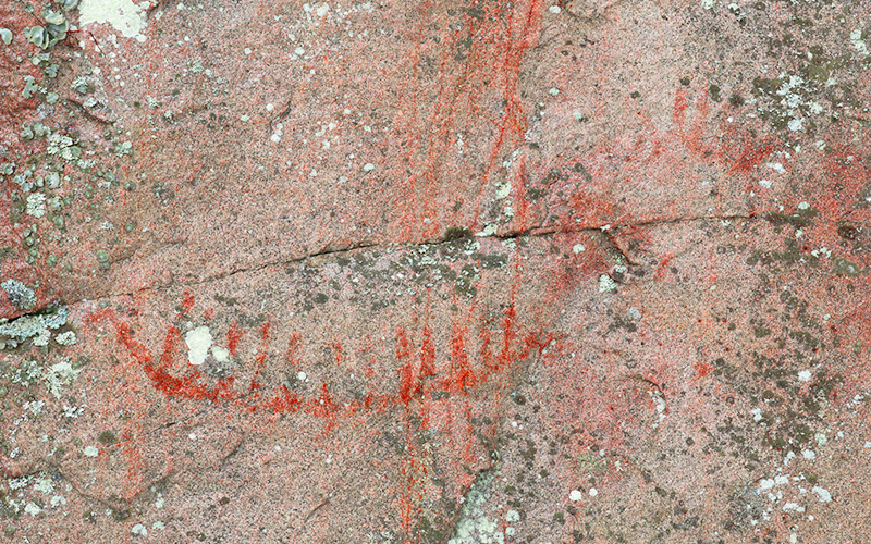 Esihistoriallinen kalliomaalaus, jossa on tunnistettavia kuvioita.