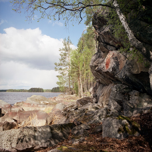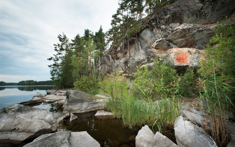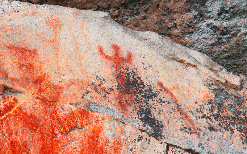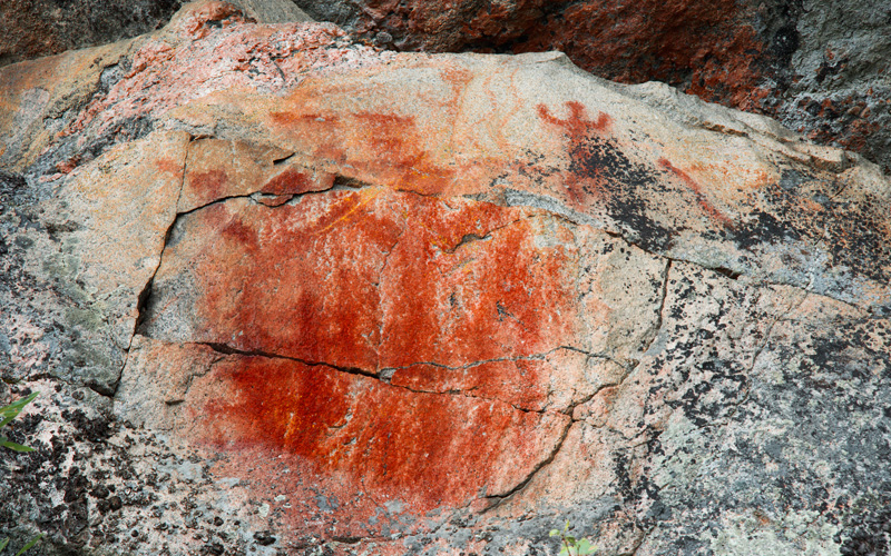 Esihistoriallinen kalliomaalaus, jossa on tunnistettavia kuvioita.