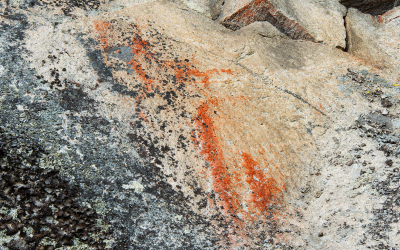 Kolmiköytisienvuoren punainen läiskä erottuu kauas. Läiskän yläosasta on hahmotettu kaksi suurikokoista, kädet kohotettuina maalattua ihmistä, mutta tulkinta ei ole yksiselitteinen. Toisen tulkinnan mukaan kalliossa on kaksi peräkkäistä venekuvaa. Punaisen läiskän keskeltä voi hahmottaa tummemmalla maalatun ihmishahmon. Selkeämmät hahmot löytyvät suuren läiskän yläpuolelta. Oikealla on kädet kohotettuna kuvattu ihmishahmo, jonka alaosa on käärmemäinen. Ihmisen oikealla puolen on käärmemäinen viiva. Ihmishahmon vasemmalla puolen on kaksi heikosti erottuvaa aaltoviivaa sekä suuripäistä, sivusta kuvattua ihmistä muistuttava kuvio. Näistä edelleen vasemmalle erottuu selvemmin kaksi vaakaviivaa, joissa on kalan muotoa. Pääryhmän oikealla puolella on vielä muutamia kuvioita, käärmemäinen viiva, mahdollisesti pieni eläin sekä pari pystyviivaa niiden alapuolella.