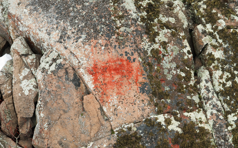 Ajan haalistama esihistoriallinen kalliomaalaus, jossa on tunnistettavia kuvioita.