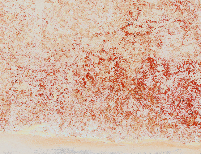Ajan syömä esihistoriallinen kalliomaalaus, jossa on tunnistettavia kuvioita.
