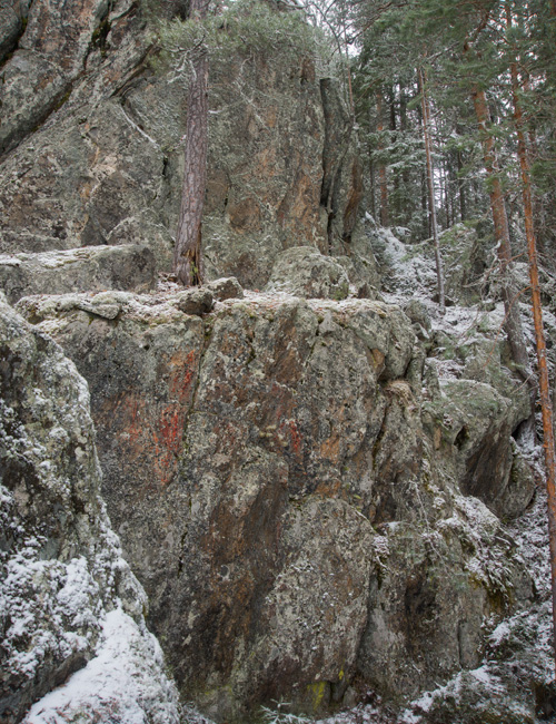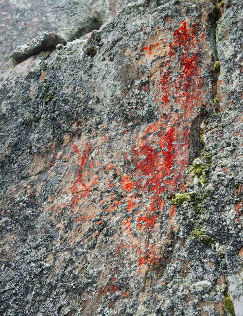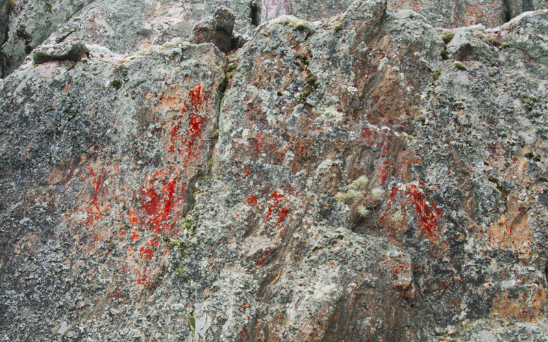 Muutama metri maalausalueesta oikealle on erillinen paasi, jonka tasaisessa kyljessä on vielä pieni värijälki. Väriä on myös maalausten yläpuolella olevan terassin yläpuolella. Siellä on kallionkolossa kulunut värijälki.