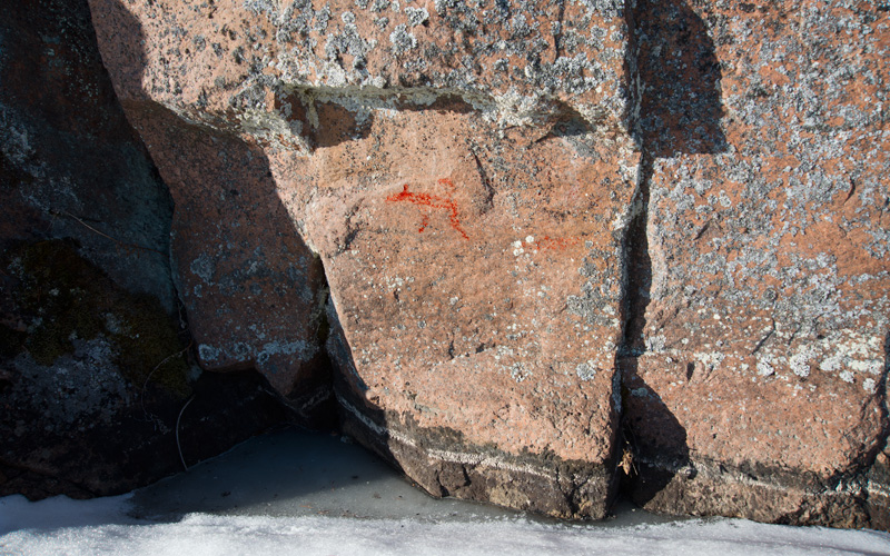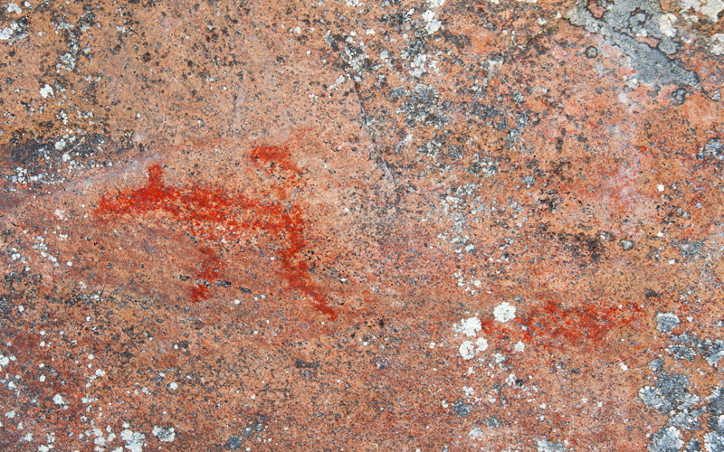 Esihistoriallinen kalliomaalaus, jossa on tunnistettavia kuvioita.
