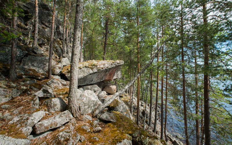 Metsäisen rinteen puolivälissä suuren kalliolohkareen alle jää onkalo. Onkalon reunusta kiertää punainen nauha ja sen ylle kohoava kivinen lippa on värjätty. Voimakasta väriä on myös onkalon edessä oikealla olevan kiven etupinnassa. Kivestä on mahdollisesti tunnistettavissa oikealle katsova eläinhahmo.