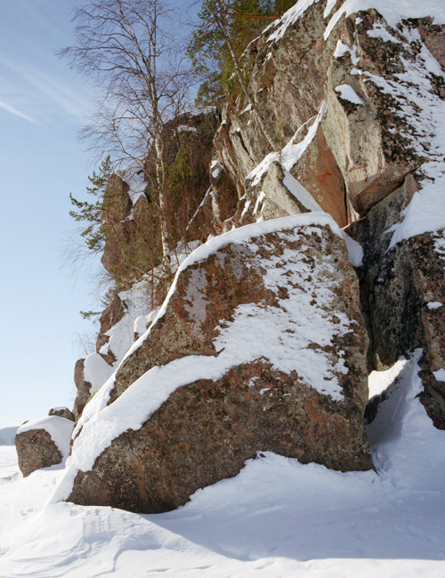 Konniveden Haukkavuoren tunnettu hirvi sijaitsee kalliosta irronneen lohkareen muodostaman solan yläpuolisessa tasaisessa kallionulkonemassa. Osin ääriviivalla ja osin täyteisesti maalatun eläimen jalat taipuvat vatsan alle.