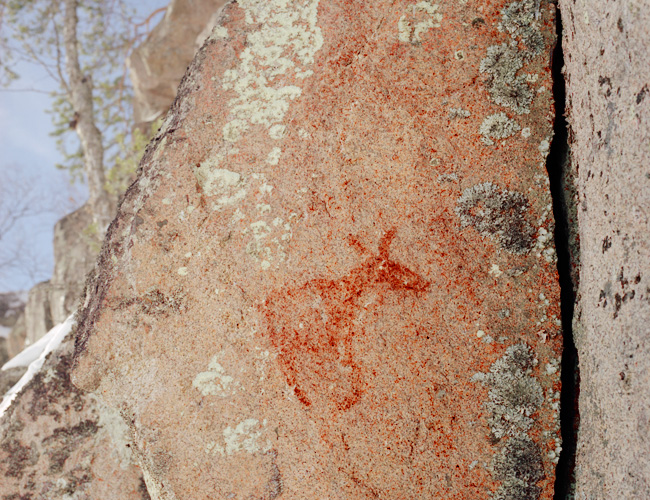 Pieni esihistoriallinen kalliomaalaus, jossa on tunnistettava kuvio.