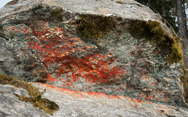 Mahdollinen kalliomaalaus, jossa ei ole tunnistettavia kuvioita. Todennäköisesti nykyaikaista tai luontaista väriä.