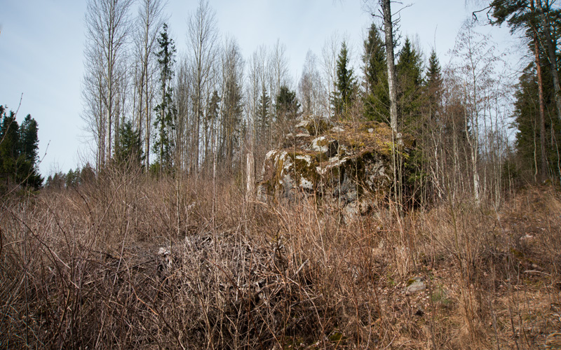 Pukinsarvenmäen pusikkoisessa rinteessä kohoaa siirtolohkare, jonka yläosan viistolla pinnalla on punainen värialue. Väri on vahvaa, mutta se on pikemmin nykyajan maalia tai luontaista punaväriä kuin esihistoriallinen maalaus.
