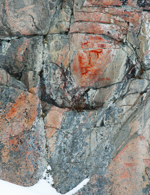 Esihistoriallinen kalliomaalaus, jossa on tunnistettavia kuvioita.