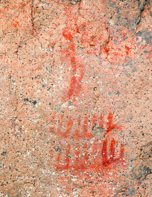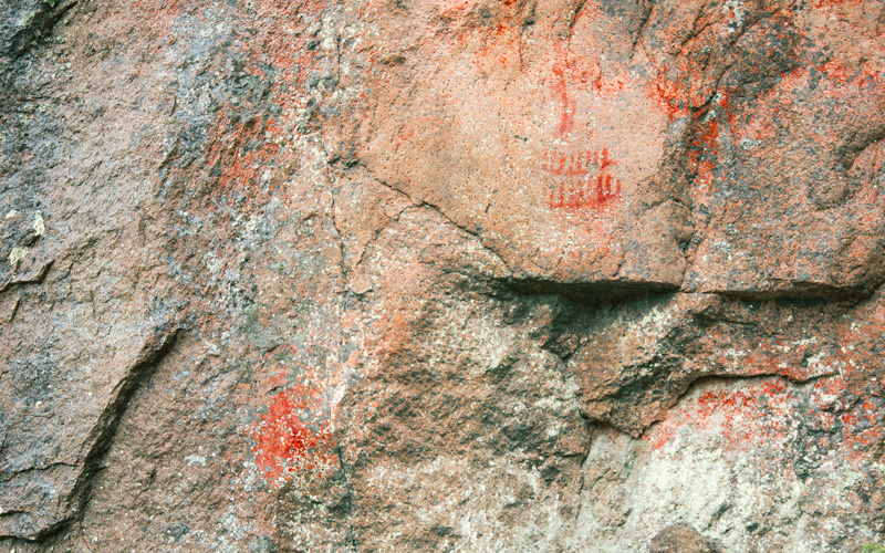 Esihistoriallinen kalliomaalaus, jossa on tunnistettavia kuvioita.