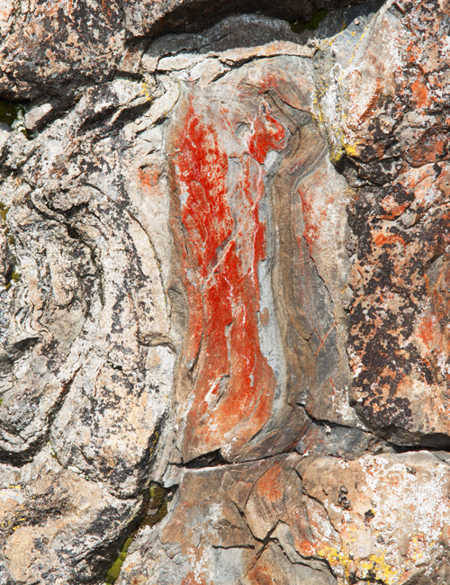 Esihistoriallinen kalliomaalaus, jossa ei ole tunnistettavia kuvioita.