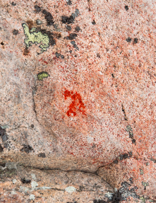Ehdotettu kalliomaalaus. Todennäköisesti luontaista väriä.