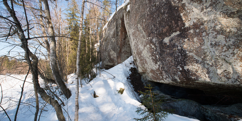 Kun kävin paikalla uudelleen maaliskuussa 2013 tieto mahdollisen maalauksen sijainnista oli tarkentunut ja sen perusteella löysin kalliosta hieman vakuuttavampia, mutta heikkoja värijälkiä. Värialue on varsin rikkonainen ja epämääräinen. Tämäkin väri lienee luontaista.