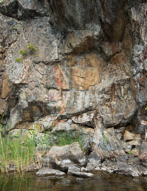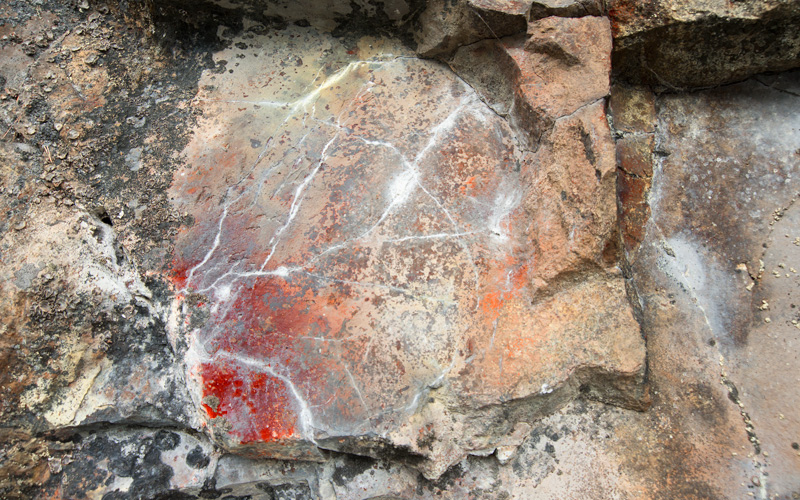 Esihistoriallinen kalliomaalaus, jossa ei ole tunnistettavia kuvioita.