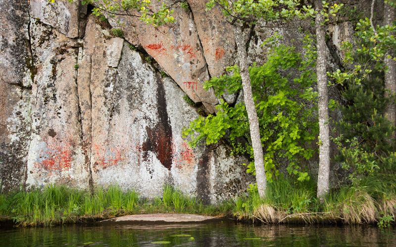 Lemin Ruominkapian koillisrannalla kohoaa suoraan vedestä kallio, jossa on maalauksia usealla tasolla. Kallion pinta on ylhäällä melko hyvin säilynyt, mutta alhaalla jäkälä peittää laajoja alueita. Säilyneet alueet paljastavat kuitenkin runsaan maalauskentän.