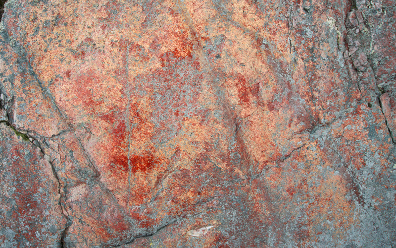 Kulunut esihistoriallinen kalliomaalaus, jossa on tunnistettava kuvio.