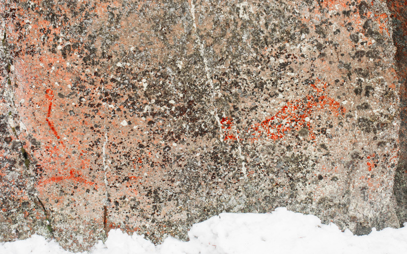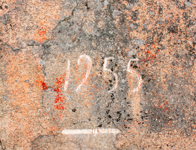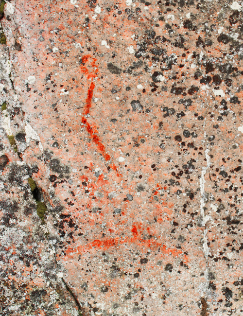 Edempänä oikealla kallioon on merkitty valkoisella vaakaviivalla vedenkorkeus ja vuosiluku 1955. Merkinnän ympärillä on myös selvää punaväriä, josta ei kuitenkaan pysty tunnistamaan varmoja kuvioita. Sen sijaan maalauskohdan yläpuolella, noin 3,5 metrin korkeudella on kulunut, mutta silti selvä venekuva, johon on maalattu yhdeksän miehistöviivaa.