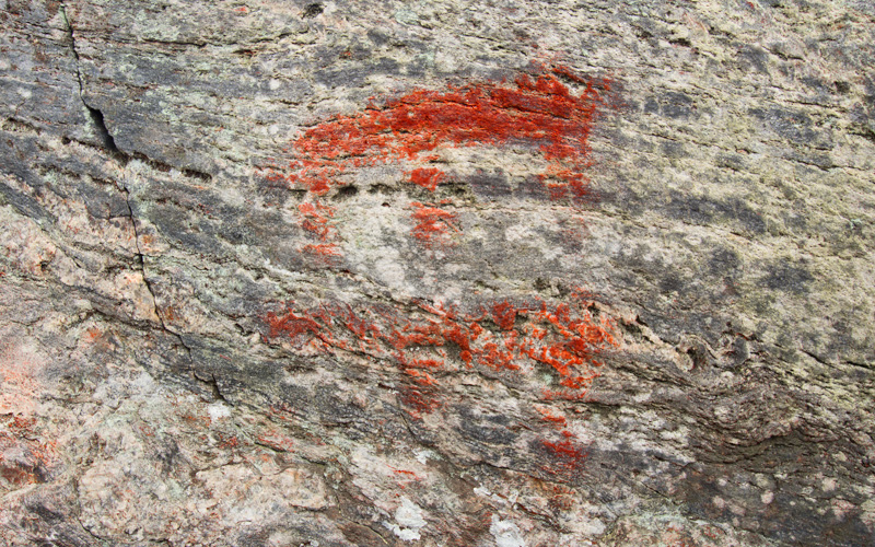 Esihistoriallinen kalliomaalaus, jossa on tunnistettavia kuvioita.