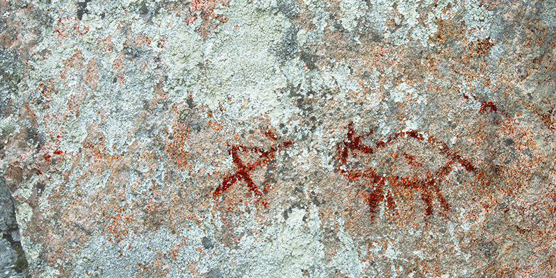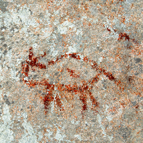 Kalliomaalaus, jossa on tunnistettavia kuvioita. Ilmeisesti nykyaikainen.