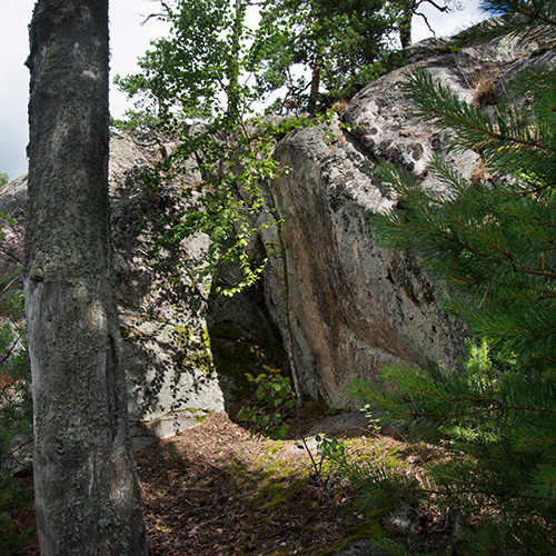 Naantalin Luonnonmaan länsirannalla, Virvelahden uimarannan pohjoispuolella kohoaa metsäinen kallio, jonka ylärinteessä terassimaiselta tasanteelta nousee matala kallio. Kallio muodostaa nurkkauksen, jonka länteen suuntaava seinämä on sisäänpäin kääntynyt. Kallion edessä kasvavan koivun takaa erottuu punaisia maalausjälkiä.